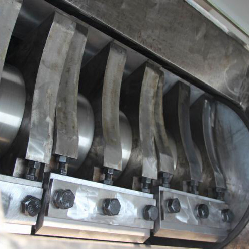 ? 爪刀型采用對(duì)稱(chēng)階梯式排列,分散沖擊負(fù)荷,使大尺寸料塊破碎更省力,每片刀均可旋轉(zhuǎn)180度二次使用,減少磨刀次數(shù);